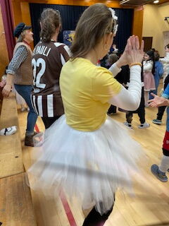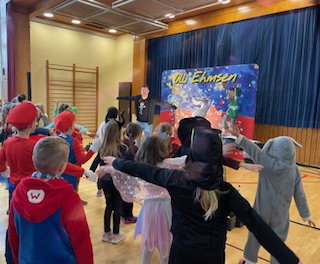 Zudem fanden für alle Klassenstufen Mitmachkonzerte mit Oliver Ehmsen statt! In der Turnhalle wurde gesungen und getanzt.
